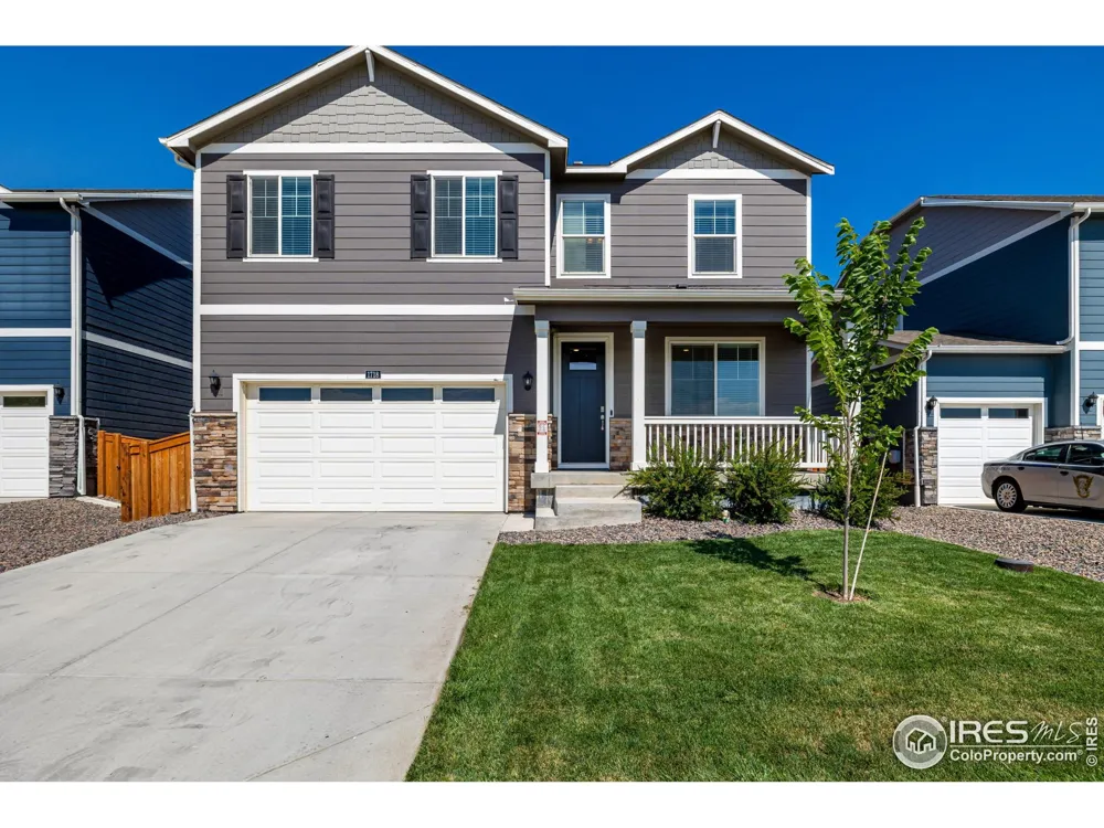 Less than ten minutes from downtown Windsor, this thoughtfully designed single-family residence balances modern livability with a welcoming sense of place. A classic exterior with stone accents, a neat front yard, and a covered porch sets an inviting tone that carries throughout the home. Inside, nine-foot ceilings and wide-plank flooring in warm modern tones create an open, intentional atmosphere. The expansive great room flows seamlessly into a contemporary kitchen where white cabinetry, granite counters, subway tile backsplash, and stainless steel appliances form an elegant yet functional space. A large island, pendant lighting, and an expansive walk-in pantry complete the kitchen's design, blending practicality with style. Just off the entry, a den with French doors offers flexibility as an office or reading nook, while the upper level introduces a versatile loft for relaxation or play. The primary suite provides a private retreat, enhanced by abundant natural light, a spacious walk-in closet, and a well-appointed bath with dual sinks. The unfinished basement extends the opportunity for customization, whether for additional living, recreation, or storage. Outdoors, a level and carefully landscaped backyard provides room to gather, complemented by a quaint concrete patio that encourages time spent in the fresh air. Additional highlights include two 240-volt EV charging outlets in the garage. With a location that ensures quick access to Windsor's vibrant downtown, community parks, and commuter routes, this home offers a turnkey opportunity to enjoy modern Colorado living.