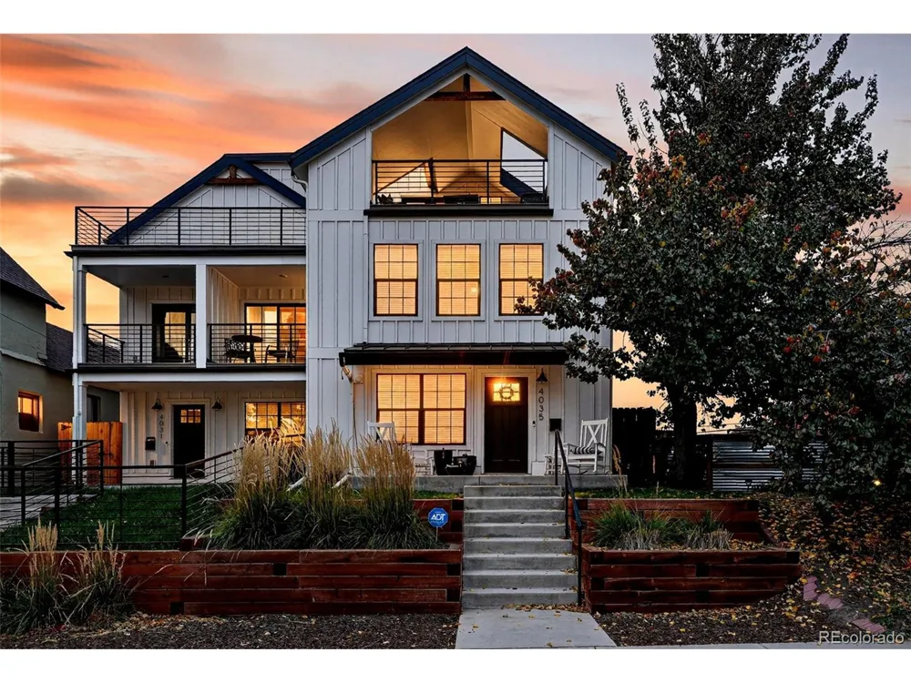 Built in 2019, this thoughtfully designed modern home offers exceptional indoor-outdoor living in the heart of Sunnyside. The open-concept main level features hardwood floors, recessed lighting, a gas fireplace with custom built-ins, and a light-filled living space flowing into a chef's kitchen with quartz countertops, a large island, custom cabinetry, a walk-in pantry, and Viking stainless steel appliances. A dedicated main-level office provides a convenient work-from-home setup. The second level includes two bedrooms, a spa-worthy full bath, and a full laundry room. The top-floor primary suite offers a private deck, space for a sitting area, and a well-appointed en suite bath with dual vanities. The finished basement features 9-foot ceilings, a bedroom, and a second living space ideal for a media room or guest retreat. Outdoor spaces include a welcoming front porch, covered upper-level deck, and a private fenced backyard with a covered patio. Detached alley-access garage. Prime Sunnyside location just steps from neighborhood parks, popular restaurants and coffee shops, with easy access to LoHi, RiNo, and downtown Denver.