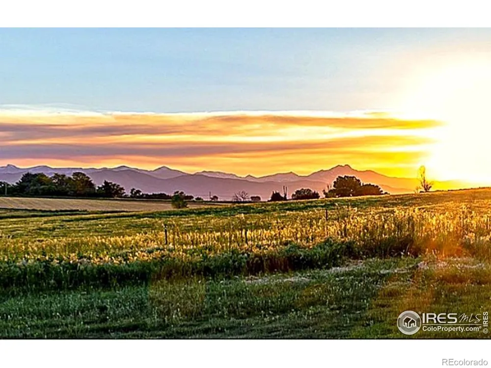 Remarkable ~80-acre irrigated property minutes from Longmont offering exceptional water rights and long-term flexibility. Consists of two separately deeded parcels: approximately 78.45 acres of prime farmland and a 1.26-acre parcel with a two-story 1,554 SF residence. The 78+ acre parcel may be subdivided under Colorado state law into two additional 35-acre minimum parcels. Zoned Agricultural in builder-friendly Weld County, allowing a wide range of uses including farming, livestock, equestrian operations, and other permitted uses under the Weld County Land Use Code. No size, height, grading, or energy-code restrictions. Potential for future development subject to county approvals. Enjoy sweeping Rocky Mountain views and the tranquility of rural living while remaining close to Longmont, Erie, Boulder, and Frederick. Convenient access to I-25, and Denver Intnl Airport . Nearby amenities include shopping, dining, Whole Foods, entertainment, and movie theaters. The property is encircled by Boulder County conservation easements and bordered by private farmland, creating exceptional privacy and protected open space. A peaceful retreat just minutes from modern conveniences. Water rights include 50 shares of Boulder Whiterock Ditch and 40 units of C-BT, estimated value approximately $2,660,000 (buyer to verify) providing an outstanding water supply for agricultural production, equestrian uses, or future investment. Build your dream estate, create a family compound or equestrian center, retain the land, or sell portions of land and/or water. Enjoy the freedom of Weld County with the convenience of Boulder County just across the street. Additional maps and area planning information available upon request. Information deemed reliable but not guaranteed; buyer to independently verify.